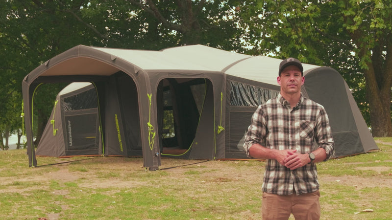 The Zempire Delta Force V2 is the ultimate family tent—a luxurious blend of classic comfort and cutting-edge convenience. This spacious 14 person tent combines the durability of traditional canvas with the simplicity of modern inflatable tent technology, delivering one of the best tents available for large families or group camping adventures. Designed with four generously sized bedrooms and a central open-plan living area, the Delta Force V2 offers a true home-away-from-home experience. Whether you're traveling with extended family or multiple families, this large tent ensures everyone has their own space, privacy, and comfort. Constructed from high-quality canvas, the tent maintains breathability and insulation in all weather conditions. The canvas air tent structure inflates from a single point, including the integrated inflatable awning, allowing for an exceptionally fast and hassle-free setup. Once pitched, you’ll enjoy a rock-solid, weather-resistant base for your camping trip—without the need for traditional poles. If you're looking for the ultimate inflatable canvas tent for serious family adventures, the Zempire Delta Force V2 is a standout choice.